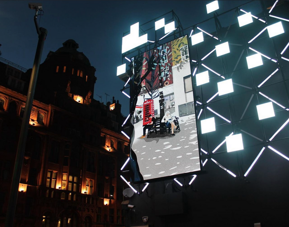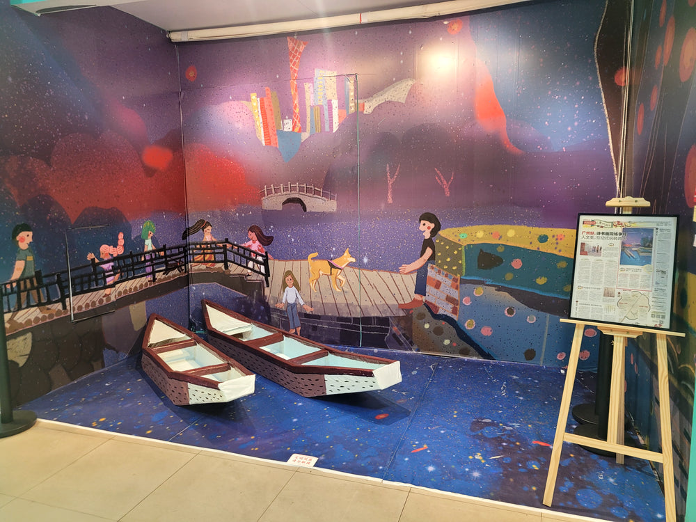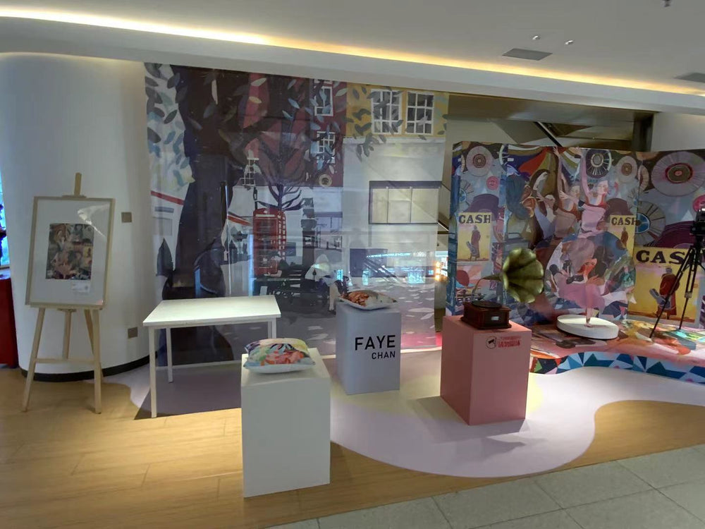 Me in video projection of my "View from the Sofa" illustration - Exhibition, Gaungzhou, China.