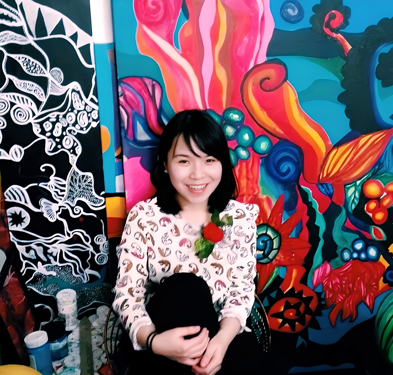 I was too shy to make friends easily. Then one day I found someone reading my diary. I felt naked, upset. So, I created another way to record my feelings. I painted them! I realised I could use colours and abstract shapes to draw so no-one would understand. My first “canvases” were 10x10cm pieces of tissue paper, just me and a color pen. Those little drawings might have been simple, but they got me into art school.