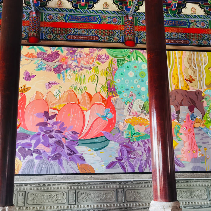 From murals for a Buddhist temple to window displays for retail shops to book cover designs and even a collection for fashion brand 'Liven Village', I specialize in bringing creative visions to life across diverse settings. Whether you’re looking to transform your office, hotel, or storefront—or you need custom artwork to enhance your brand identity—I’m here to deliver artwork that makes a statement and connects with your audience.