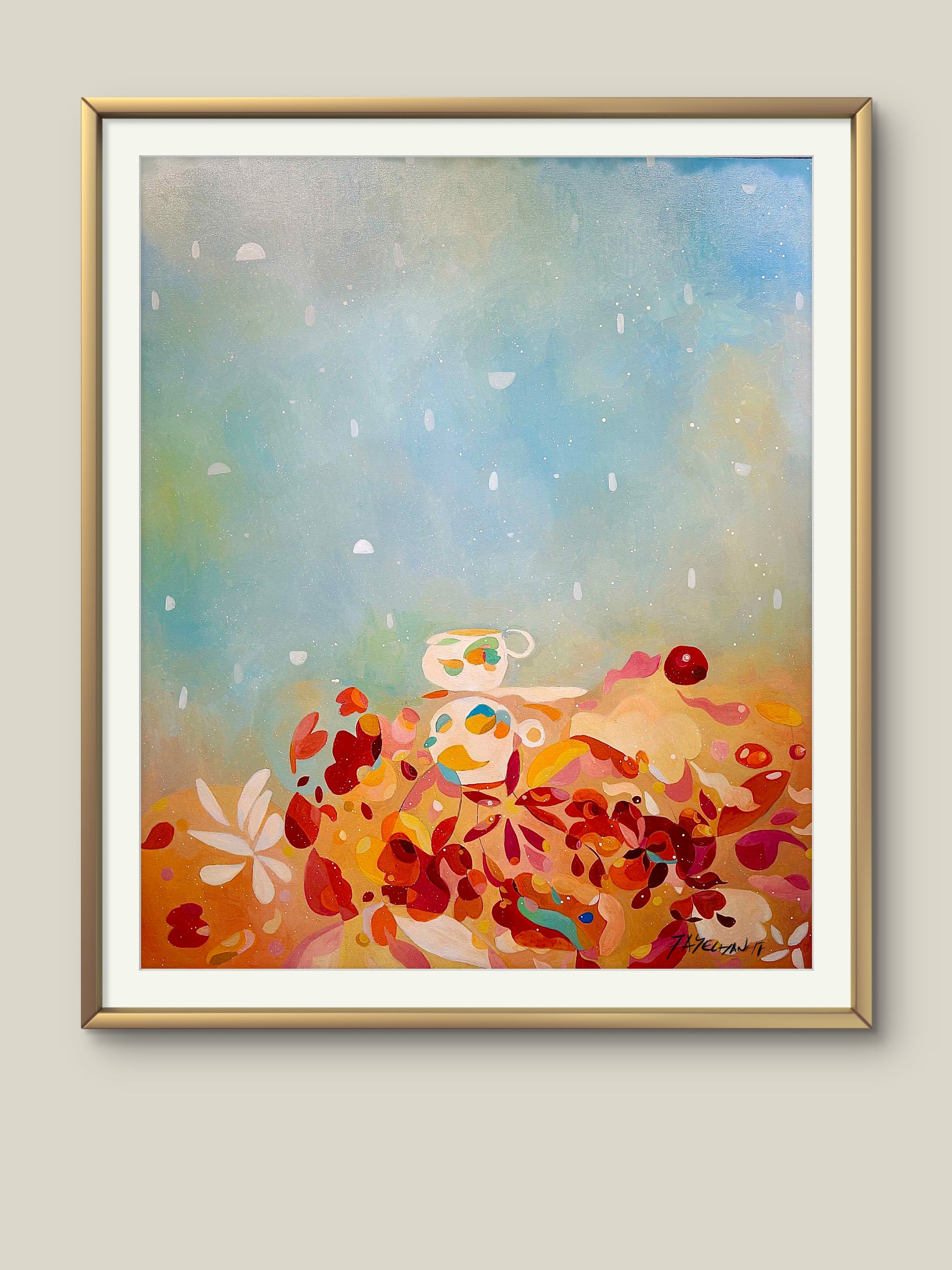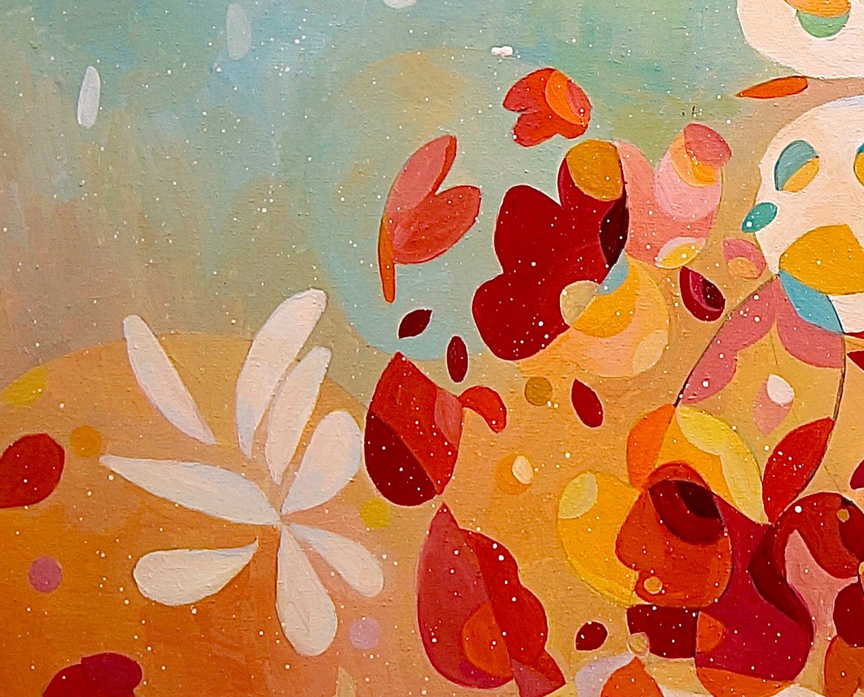In Empty Full, I explore the paradox of motherhood—the immense love and giving that simultaneously fill and deplete. This painting captures the duality of nurturing that enriches yet exhausts, illustrated through vibrant, full colors contrasted with stark, empty spaces. These elements symbolize the oscillation between richness in spirit and the need for personal replenishment. As a conversation about the sacrifices and rewards of motherhood, it invites viewers to reflect on the strength required to navigate these opposing feelings.